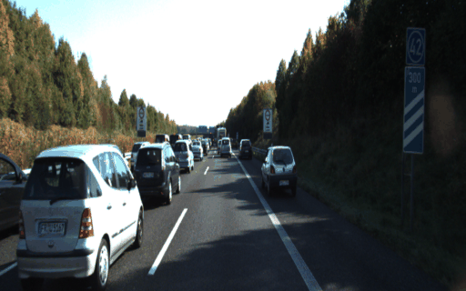 Our model can predict and condition on both 2D bounding boxes and 3D-bounding boxes. Below are our 3D-bounding-box frame predictions and video generations conditioned on the 3D-bounding-box predictions from KITTI and vKITTI2 datasets.Inputs: ONE initial GT frame + THREE initial GT 3D-bounding-box frames + ONE last GT 3D-bounding-box frame. Left: bounding-box frame predictions. Right: Video generated based on predicted bounding-box frames. These examples are being compressed from 375x1242 to 320x512.